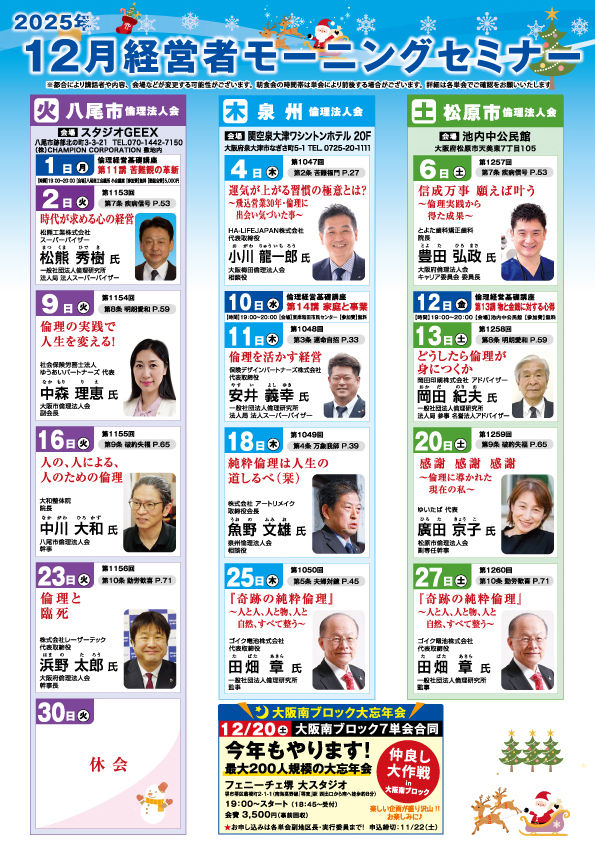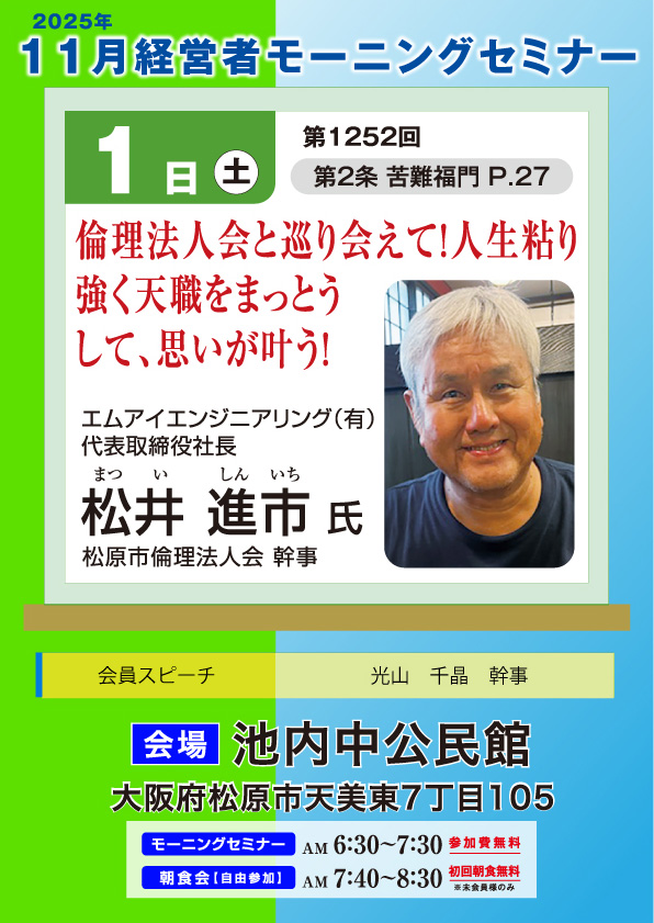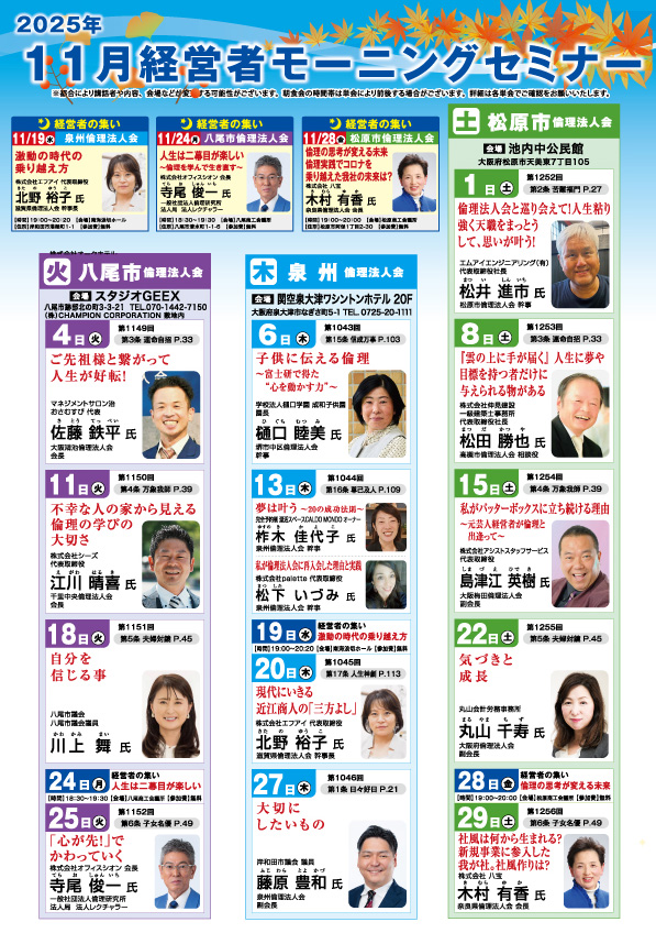 | 事業繁栄の秘訣を共に学びましょう。 <経営者モーニングセミナーご案内> |